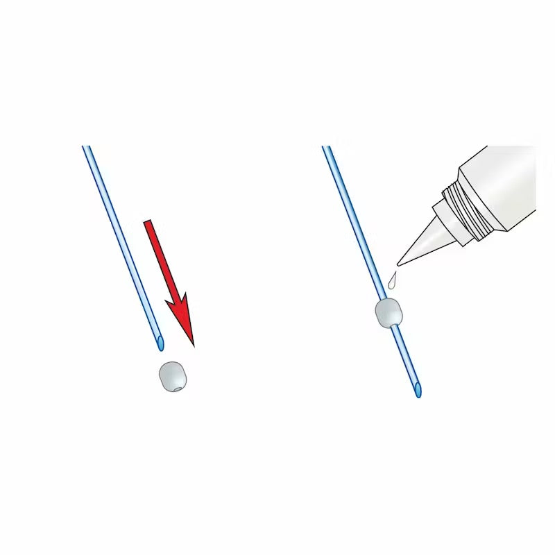 Perline in materiale plastico resistentissimo con fori calibrati al diametro del filo. Appositamente studiate per l’incollaggio su monofili in nylon, fluorocarbon e trecciati nella realizzazione di montaggi senza nodi.
