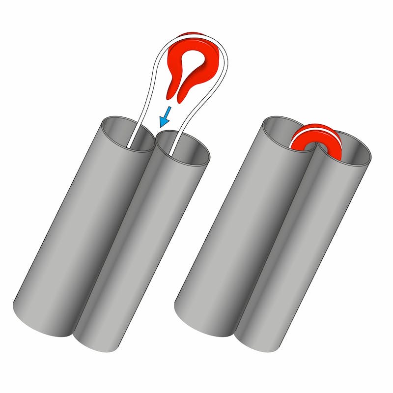 Selletta in gomma per proteggere l’elastico da eventuali danneggiamenti quando la roubaisienne viene riposta.