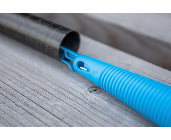 La base zigrinata facilita il taglio e l’adattamento al diametro interno della canna, mentre il design è studiato per essere rimosso agevolmente tramite l’apposita extractor rod, senza danneggiare il fusto.