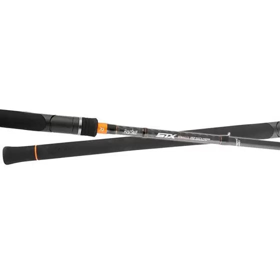 Altamente specializzata, ammicca al pescatore intelligente che non giudica le canne dal prezzo, ma da quanto sanno realmente esprimere in pesca: in sintesi, questa è l’identità della gamma STX.Si presenta in quattro diverse vesti per mettere subito in evidenza la sua versatilità. I colori delleraffinate decorazioni aiutano a distinguere, mentre un paio di falsi lanci bastano all’esperto perapprezzare la sostanza. Da 3 a 60 grammi di peso, il panorama degli artificiali utilizzabili è vastissimo,mentre le lunghezze spaziano dai 7 ai 9 piedi, in un ventaglio di opzioni che difficilmentedelude. Le impugnature inglobano il portamulinello a profilo ribassato, molto stabile e per nullaingombrante in mano, mentre sono strutturate in EVA ad alta densità per soddisfare allo stessotempo l’utilizzatore delle acque dolci e l’appassionato del mare. I fusti in carbonio Alto Modulodalla fine tessitura (Micro Pitch) sono laccati in nero opaco per conferirgli una particolare eleganza.E poi gli anelli, così moderni con il telaio a profilo K che previene la formazione di grovigli di lenza e il passant in SiC per gestire in dolcezza i fili trecciati.Le canne ad azione più leggera sono dotate di rigidi anelli in SiC con telaio K a gambo lungo. Le versioni piùpotenti montano anelli in SiC con telaio K a gambo medio. Innesto a spigot ad alta precisione per una puntuale trasmissione delle vibrazioni, con tacche di allineamento e codice identificativo delle parti di ricambio. Al centro del portamulinello, il piano di appoggio del piede è ribassato per avvicinareil baricentro della bobina all’asse della canna. Una soluzione che ne agevola la maneggevolezza.