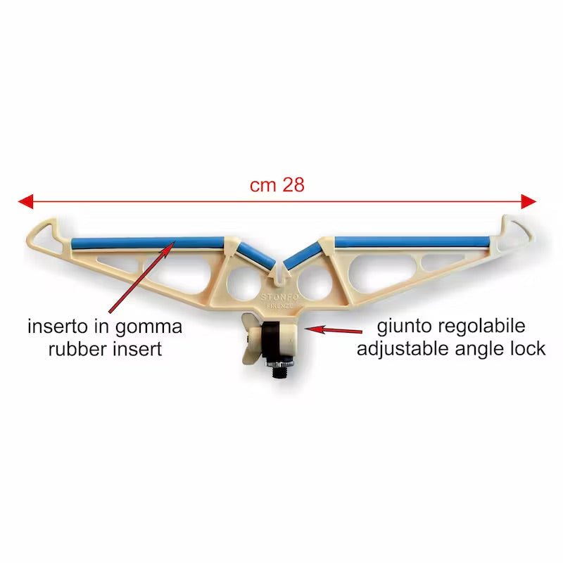 Appoggiacanna in materiale plastico resistentissimo con inserti in gomma. Munito di attacco a vite regolabile. Fornito con Battipalo omaggio.