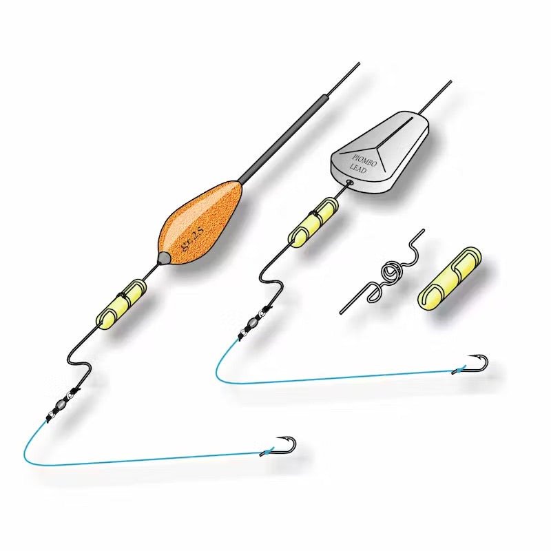 Per bloccare rapidamente sulla lenza piombi ed altri accessori scorrevoli. Ideale per la pesca alla trota, bolentino e surf casting.