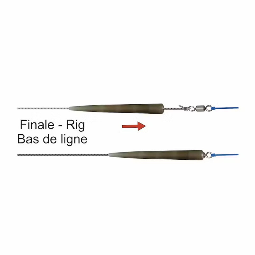 Coni in gomma morbida anti groviglio. Si inseriscono agevolmente su girelle della misura da 8 a 5 proteggendone il nodo. Mantengono inoltre il terminale ben disteso e lontano dal piombo durante il lancio evitando fastidiosi grovigli. Disponibili in due diverse lunghezze. Colore mimetico grigio-verde.