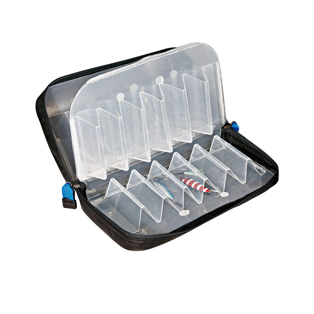Borsetta con quattro ordini di compartimenti rigidi, destinati a contenere hard lures o Egi lures.