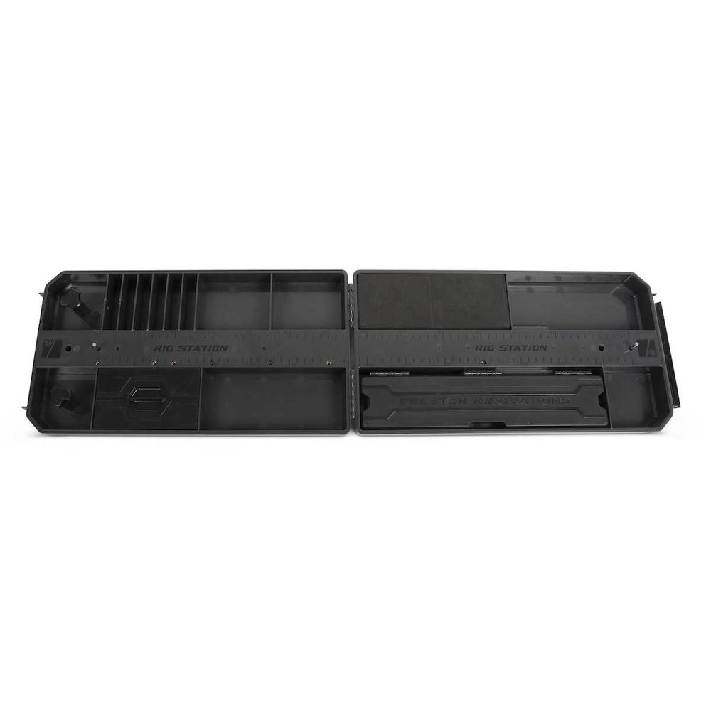 Ideale per la preparazione del rig, la Rig Station contiene tutti i materiali essenziali per la realizzazione delle montature come monofili, piombini o stotz, galleggianti e piccoli accessori tipo ami e tubini in silicone.