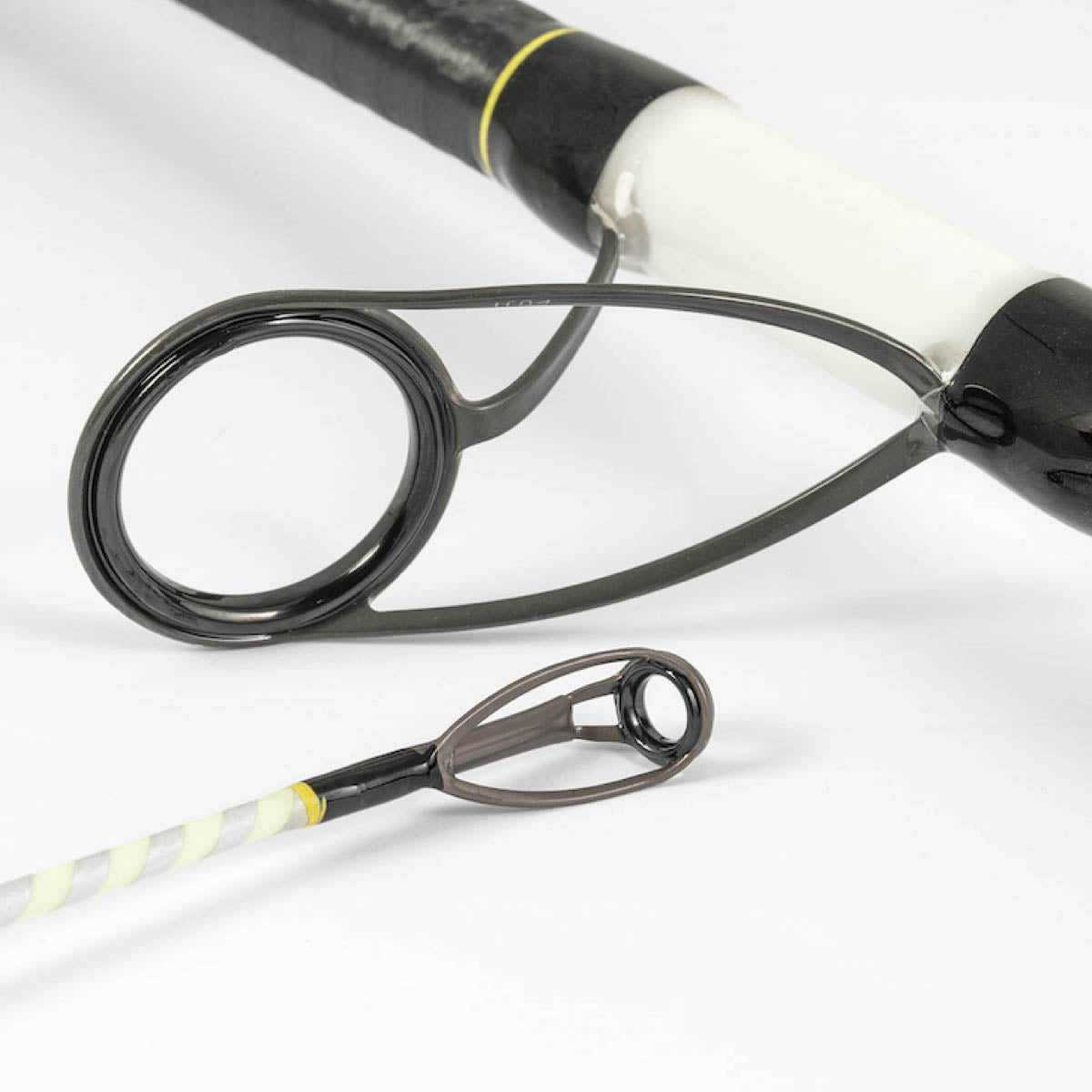 Completano la canna un porta mulinello Fuji DNPS con BackStop, una grip inferiore in gomma nervata per un controllo ottimale e un pomello ergonomico che riduce l’affaticamento durante il combattimento.