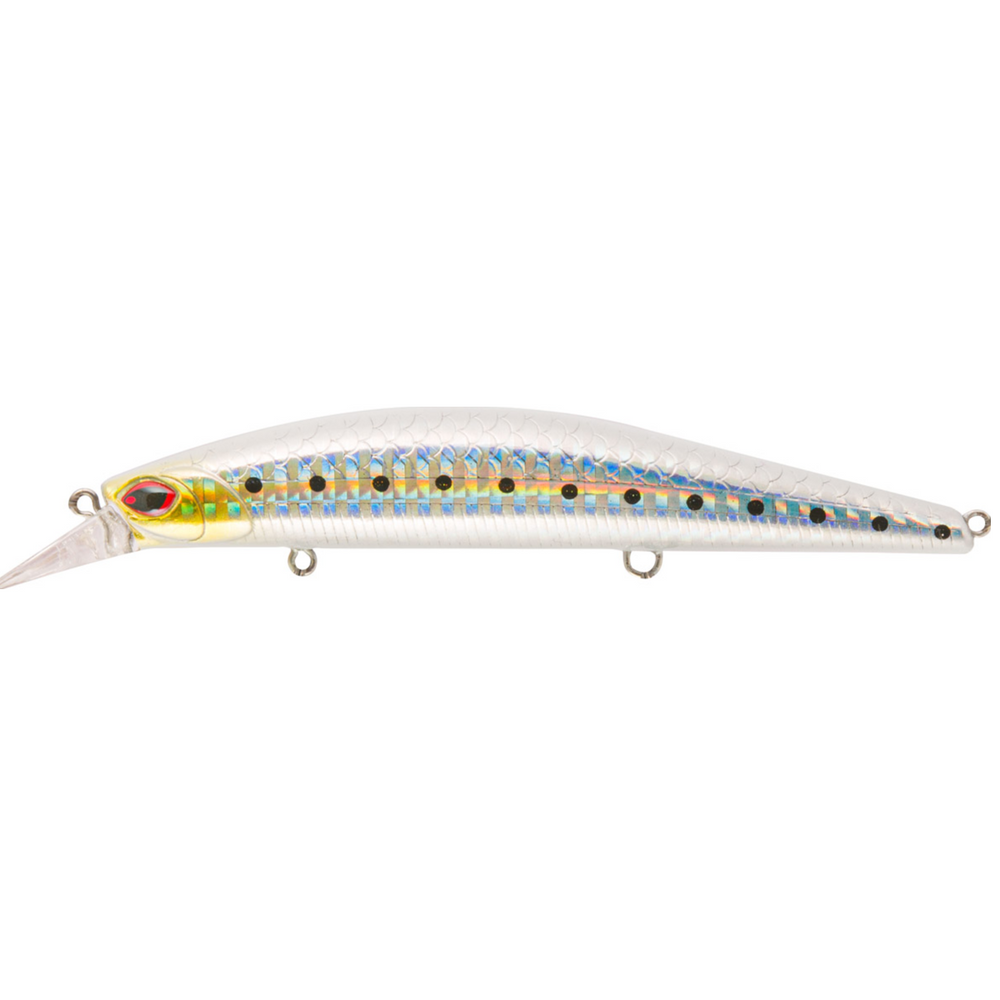 The color palette contains imitations of forage fish, but also alternatives with brushstrokes of red, to simulate the blood loss of wounded prey. In fact, there are two recovery styles for a Coastmaster: the classic linear escape, typical of healthy minnows, and the zig-zag gait, with pauses and ascents towards the surface, which for sea bass and other pelagic predators are the sign of "easy food without wasting energy", because this is how a fish in difficulty behaves. This three treble Long Jerk is prepared for swimming in the surface layers of the sea, in the range between half a meter and one and a half metres. Its lip is very wide to receive great pressure in the recovery, facilitating the achievement of greater depths; an aspect accentuated by the design of the head, which is flattened, as if to configure an extension of the headstock.