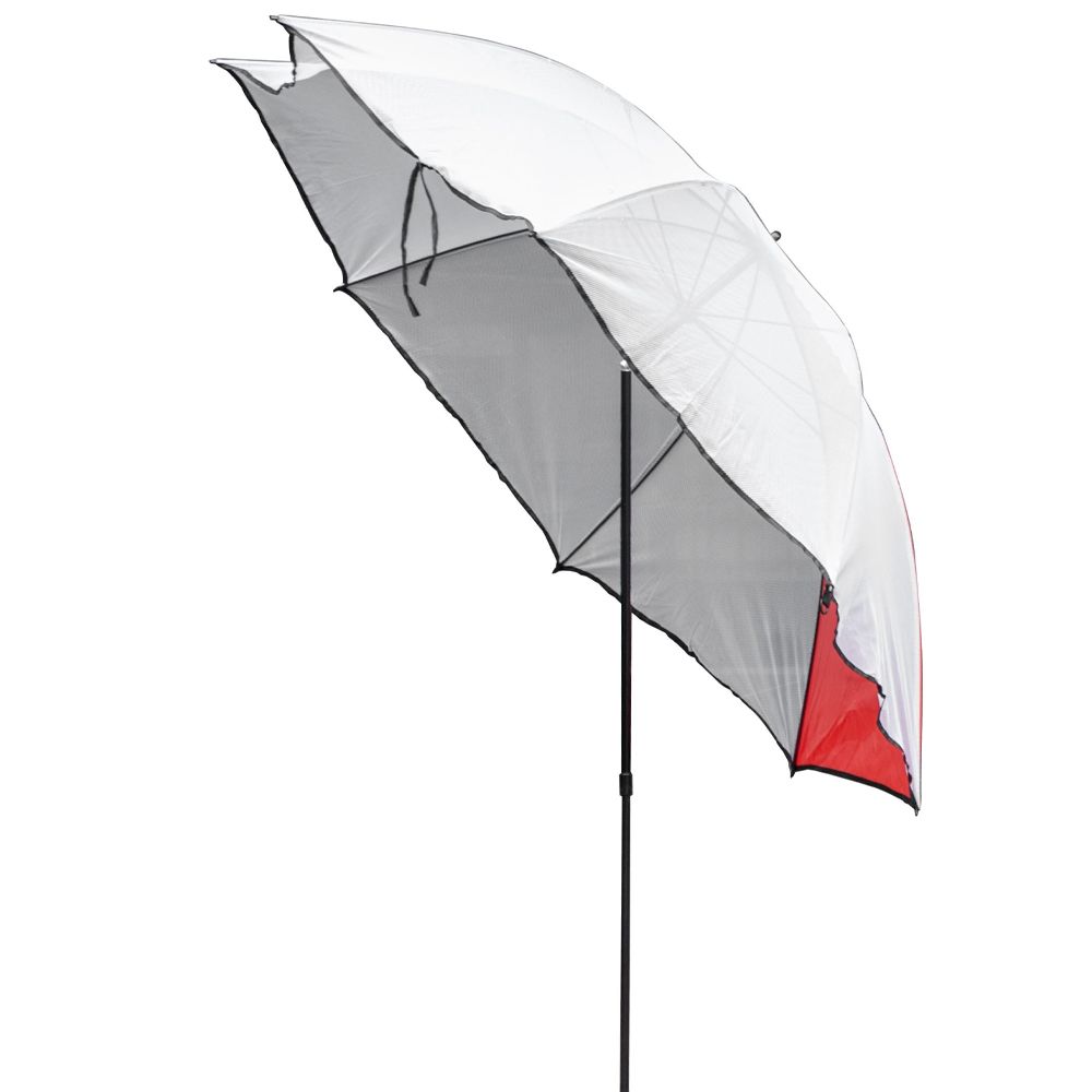 Milo Ombrellone Stadium con rete. Ombrellone per la pesca al colpo studiato appositamente per le giornate soleggiate con intensa calura, caratterizzato da un’ampia porzione composta da una robusta rete traspirante che, lasciando passare l’aria, offre sia una sensazione di freschezza che di stabilità, eliminando parzialmente l’attrito del vento contro la calotta. Il Milo Stadium, diversamente dalla maggior parte degli ombrelloni disponibili in commercio, presenta un palo fisso di ben 120 centimetri, scorrevole nel piantone, che garantisce un’estensione importante per una miglior azione di pesca. Uno snodo filettato consente di modificare l’inclinazione della struttura. In dotazione una custodia con tracolla per un comodo trasporto.